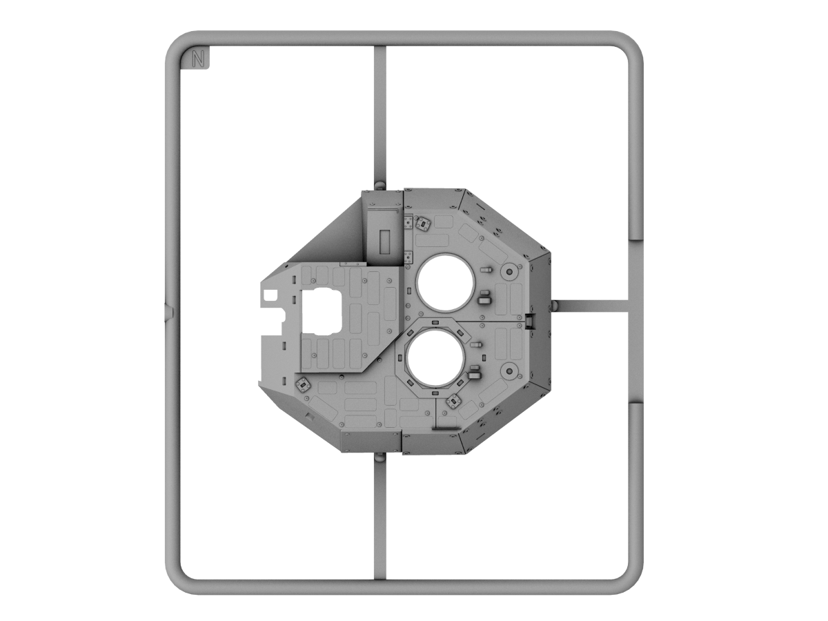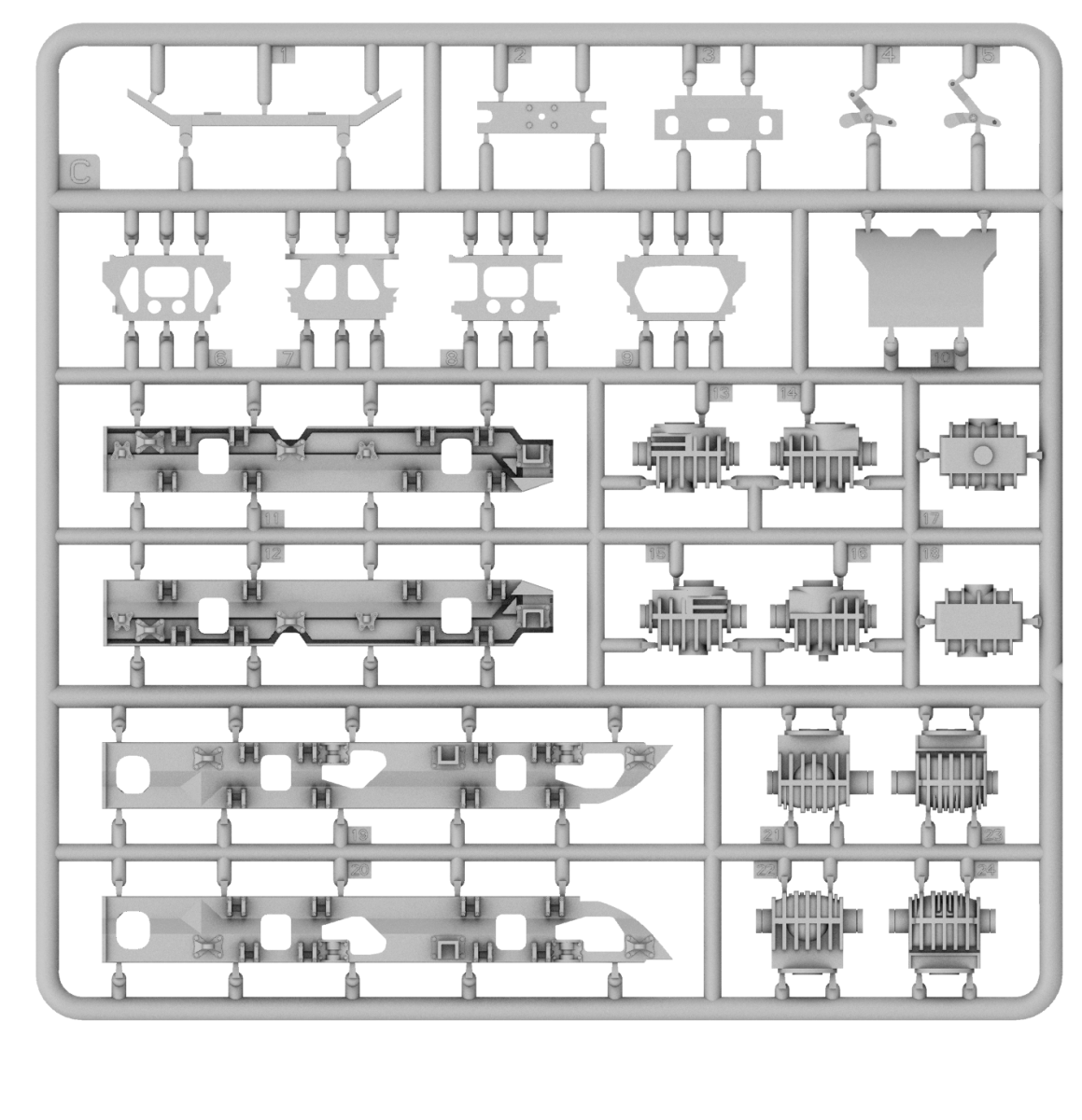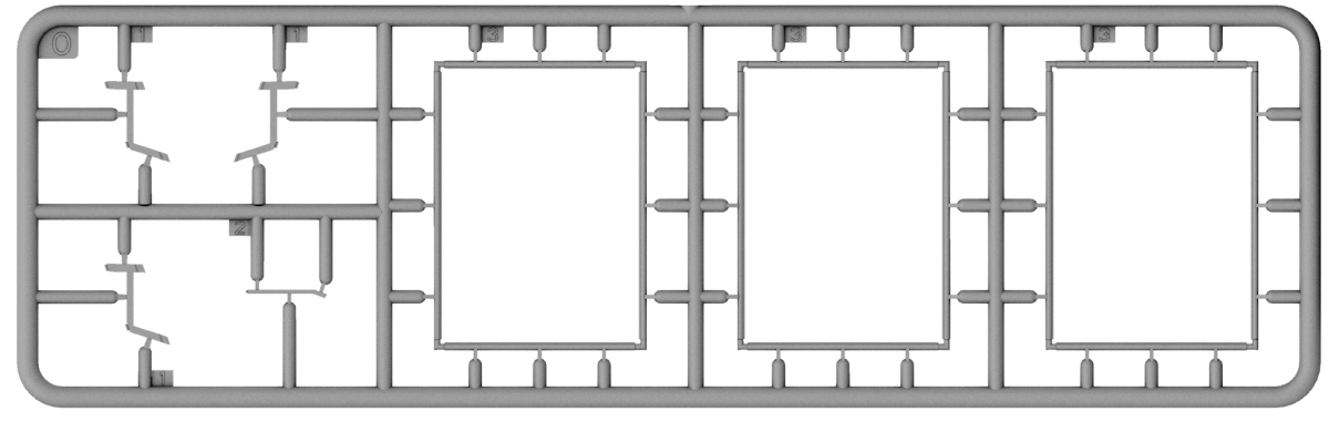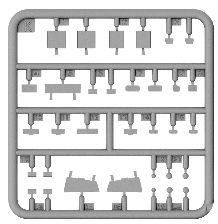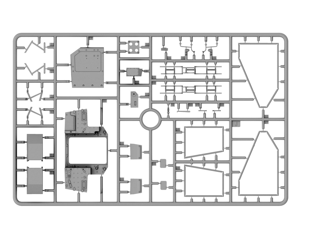 Model plastikowy do sklejania zawiera wszystkie elementy potrzebne do budowy modelu, w tym m.in.: