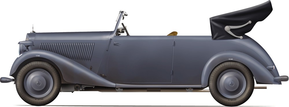Mercedes –Benz 170V (W136) produkowany był w zakładach Mecedesa w Stuttgarcie w latach 1936 -1942 (prawie 75000 egzemplarzy) i potem w latach 1946 -1955 (około 140000 egzemplarzy, z czego 34000 z silnikiem wysokoprężnym). Był to 5–osobowy samochód produkowany w 11 wersjach, w tym typy sedan lub kabriolet, limuzyna 2 - i 4 -drzwiowa. Był pierwszym samochodem osobowym z silnikiem Diesla produkowanym po wojnie. Napęd na tylne koła: różne silniki zależnie od wersji o mocy od 38 KM do 50 KM, szybkość: 110 km/h. Model 170V okazał się wielkim sukcesem marketingowym, zyskiwał wysokie oceny użytkowników. Po II wojnie światowej produkcja samochodów 170V przyczyniła się do cudu gospodarczego w RFN. W roku 1955 samochód 170V zastąpiony został nowocześniejszym 170S. W Polsce w latach 50 -60 –tych posiadanie samochodu Mercedes 170V zwłaszcza Diesla „ropniaka” wywoływało zazdrość i podziw otoczenia. Posiadaczami tych samochodów bywali aferzyści i tzw. „prywatna inicjatywa” -właściciele nielicznych w tym czasie prywatnych biznesów oraz tzw. „badylarze” –właściciele prosperujących gospodarstw ogrodniczych.