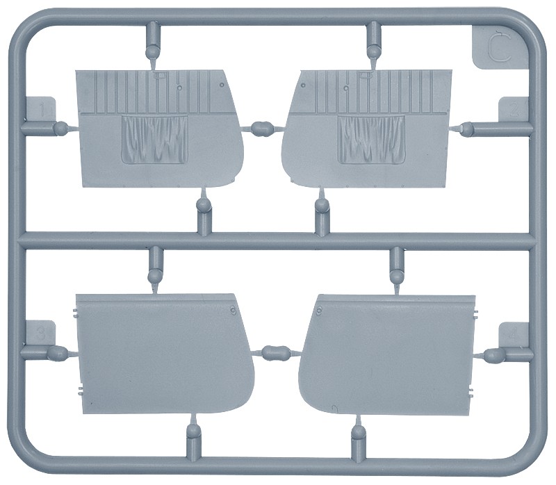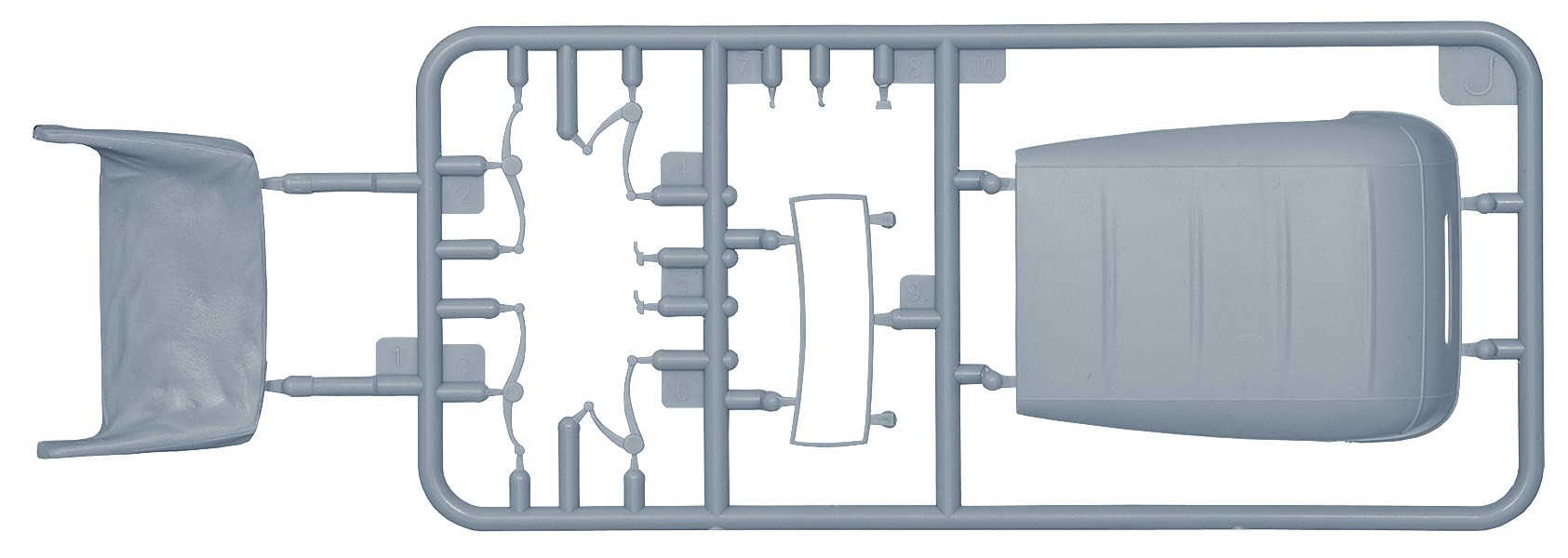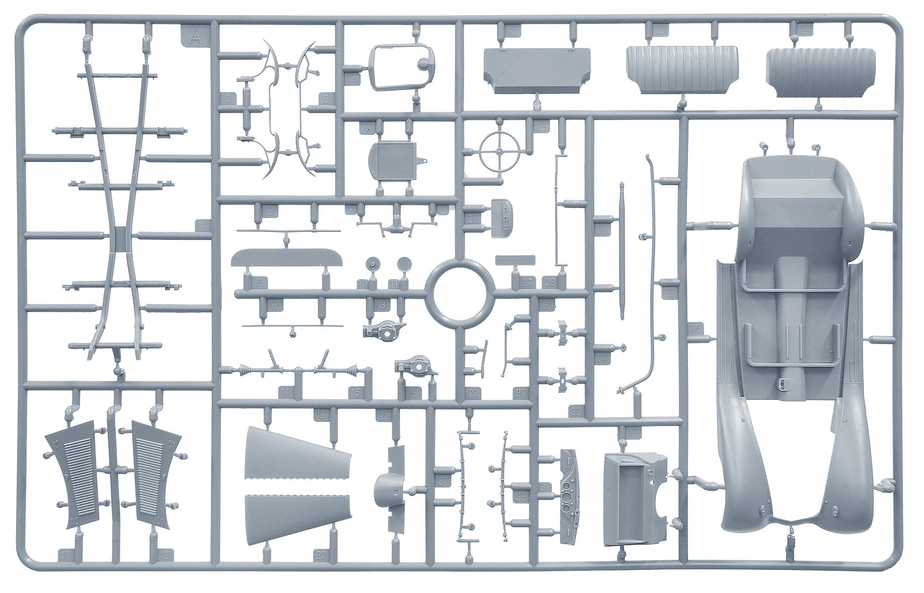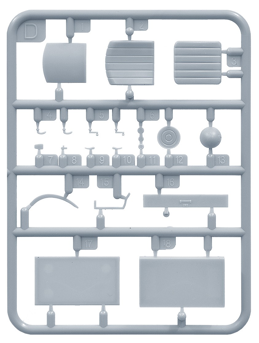 Model plastikowy do sklejania zawiera wszystkie elementy potrzebne do budowy modelu, w tym m.in.: