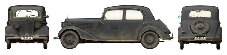 Mercedes –Benz 170V (W136) produkowany był w zakładach Mecedesa w Stuttgarcie w latach 1936 -1942 (prawie 75000 egzemplarzy) i potem w latach 1946 -1955 (około 140000 egzemplarzy, z czego 34000 z silnikiem wysokoprężnym). Był to 5–osobowy samochód produkowany w 11 wersjach, w tym typy sedan lub kabriolet, limuzyna 2 - i 4 -drzwiowa. Był pierwszym samochodem osobowym z silnikiem Diesla produkowanym po wojnie. Napęd na tylne koła: różne silniki zależnie od wersji o mocy od 38 KM do 50 KM, szybkość: 110 km/h. Model 170V okazał się wielkim sukcesem marketingowym, zyskiwał wysokie oceny użytkowników. Po II wojnie światowej produkcja samochodów 170V przyczyniła się do cudu gospodarczego w RFN. W roku 1955 samochód 170V zastąpiony został nowocześniejszym 170S. W Polsce w latach 50 -60 –tych posiadanie samochodu Mercedes 170V zwłaszcza Diesla „ropniaka” wywoływało zazdrość i podziw otoczenia. Posiadaczami tych samochodów bywali aferzyści i tzw. „prywatna inicjatywa” -właściciele nielicznych w tym czasie prywatnych biznesów oraz tzw. „badylarze” –właściciele prosperujących gospodarstw ogrodniczych.