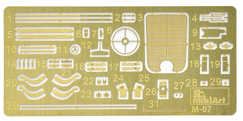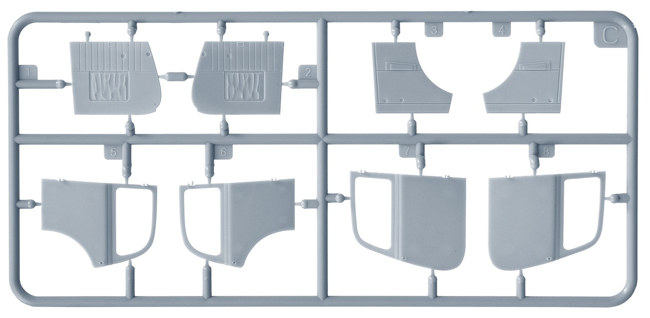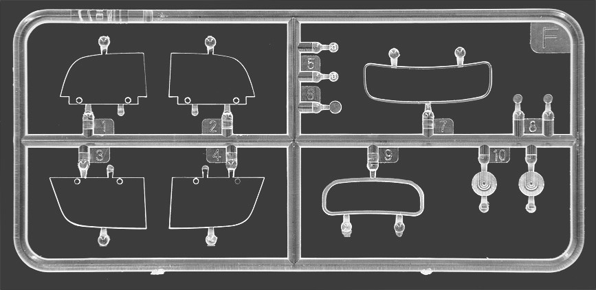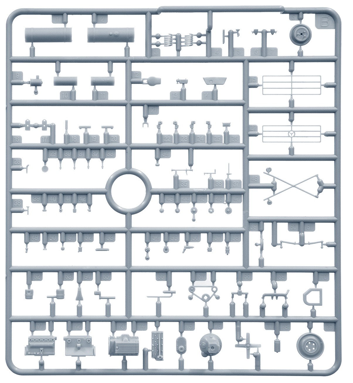 Model plastikowy do sklejania zawiera wszystkie elementy potrzebne do budowy modelu, w tym m.in.: