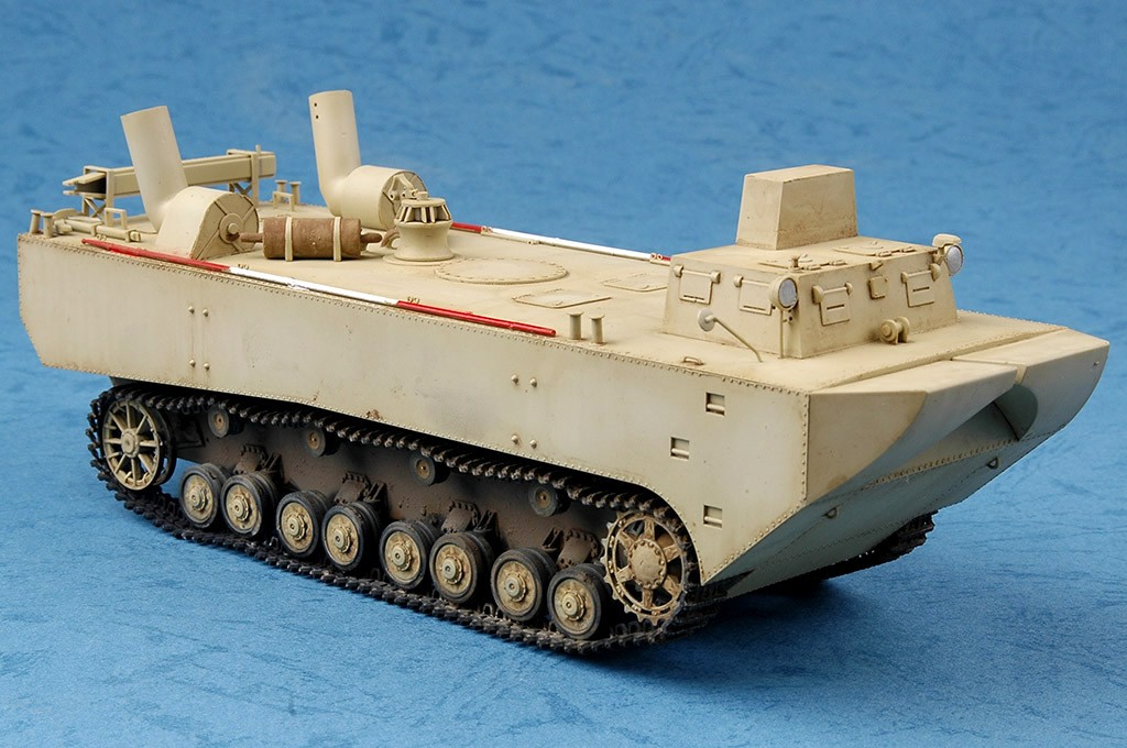 Amfibia gąsienicowa LWS (Landwasserschlepper) była niemieckim ciągnikiem zaprojektowanym w 1935 roku w zakładach Rheinmetall –Borsig w Dűsseldorf. Produkcję rozpoczęto dopiero w 1940 roku. W sumie wyprodukowano niespełna 100 egzemplarzy tych pojazdów. Jeżeli ktoś widział film „Bitwa o Anglię” z 1969 roku, to pamięta sceny z przygotowań Niemców do inwazji. Widać było niemieckie środki transportowe zgromadzone na wybrzeżu Calais, gdzie między innymi znajdowały się amfibie gąsienicowe LWS. Amfibię napędzał silnik benzynowy o mocy 300 KM. Szybkość na drodze do 35 km/h, na wodzie do 12 km/h. Załoga 2 osoby, amfibia mogła transportować 20 żołnierzy. Była nieuzbrojona. Amfibie LWS miały być używane do wyciągania na brzeg barek szturmowych bez napędu podczas inwazji oraz do holowania pojazdów po plażach. Były również używane do przewożenia zapasów bezpośrednio na brzeg podczas sześciu godzin odpływu, kiedy barki były uziemione. Wiązało się to z holowaniem przyczepy amfibii Kässbohrer (zdolnej do transportu 10-20 ton ładunku) za LWS. Niewielka liczba tych pojazdów była używana do końca wojny.