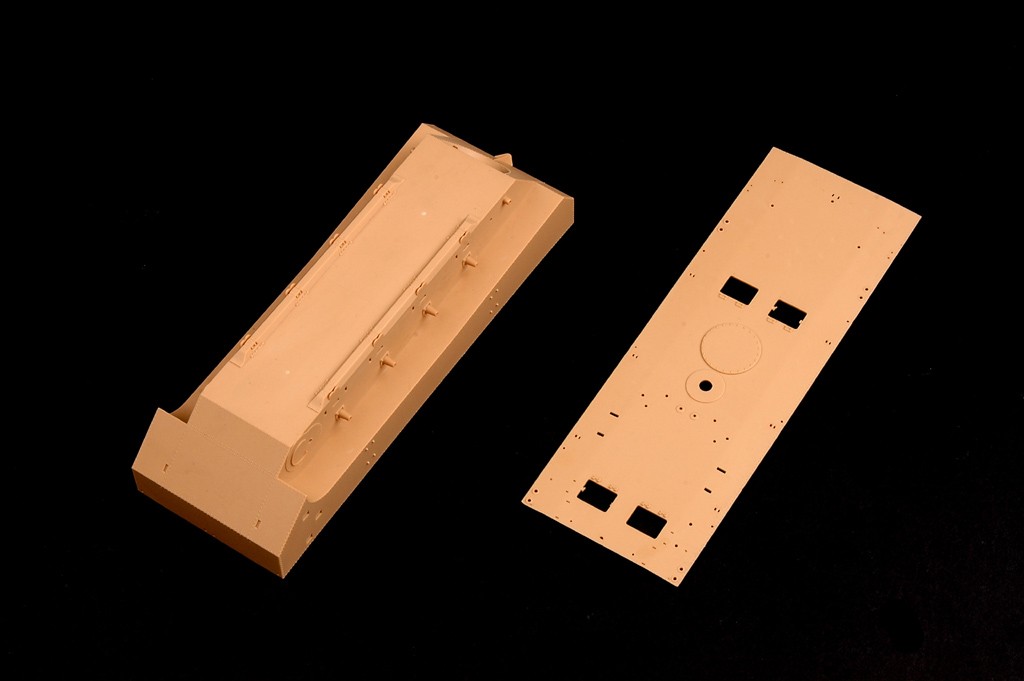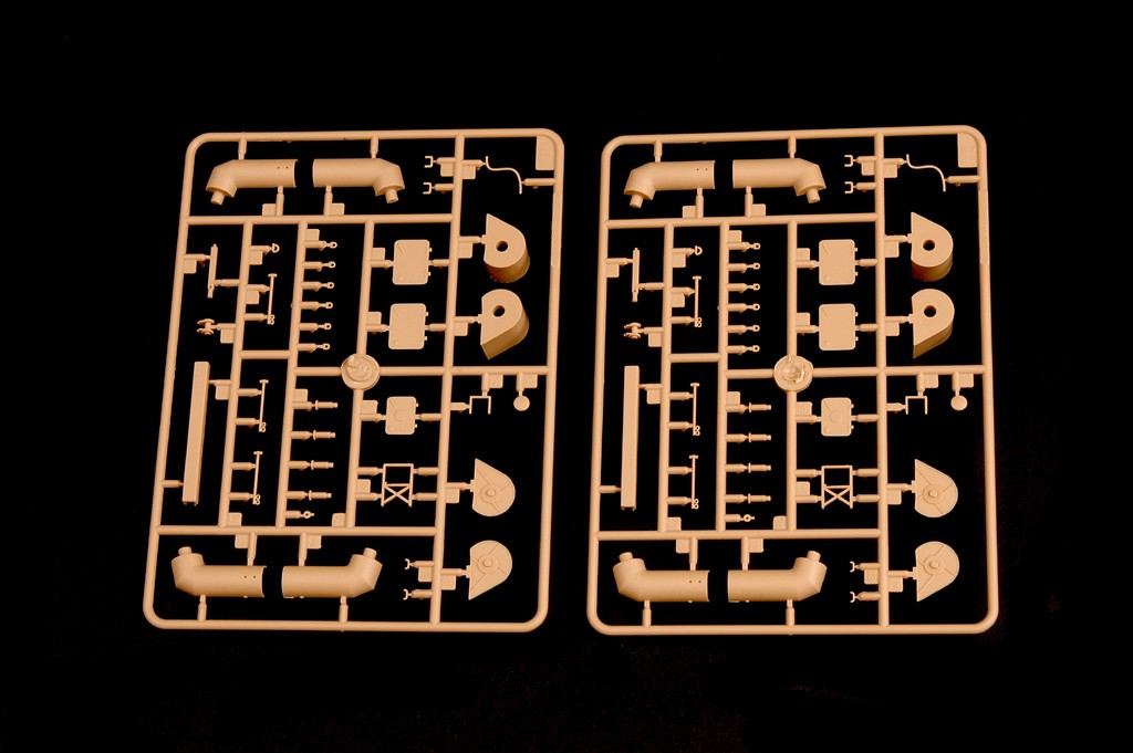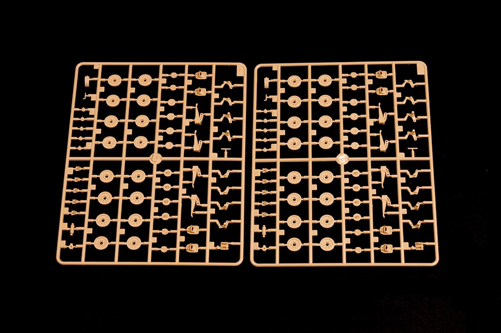 Model plastikowy do sklejania zawiera wszystkie elementy potrzebne do budowy modelu, w tym m.in.: