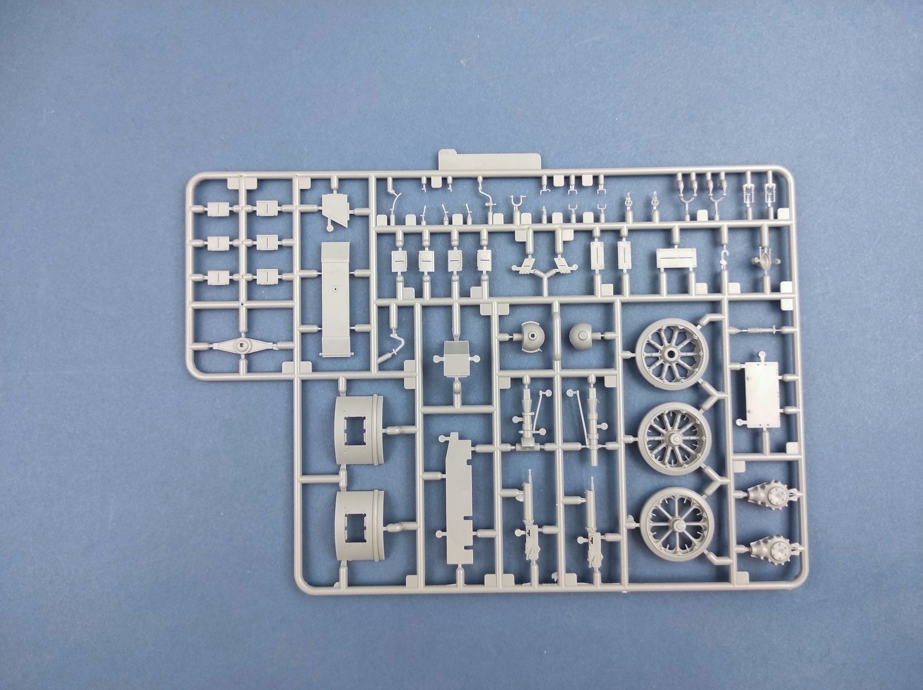 Model plastikowy do sklejania zawiera wszystkie elementy potrzebne do budowy modelu, w tym m.in.: