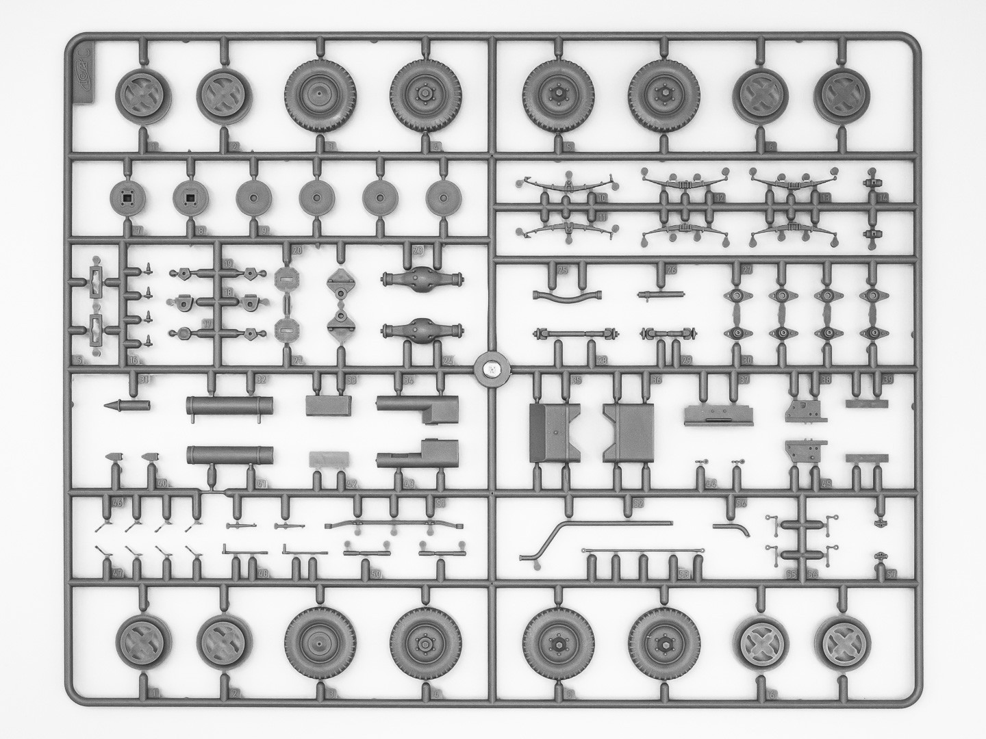 Model plastikowy do sklejania zawiera wszystkie elementy potrzebne do budowy modelu, w tym m.in.: