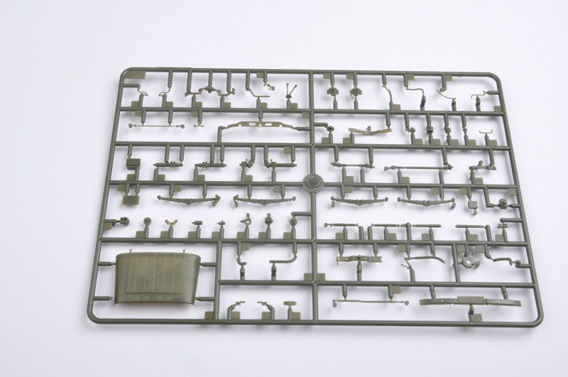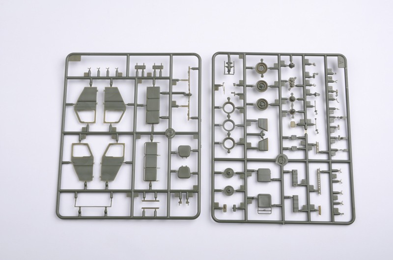 Model plastikowy do sklejania zawiera wszystkie elementy potrzebne do budowy modelu, w tym m.in.: