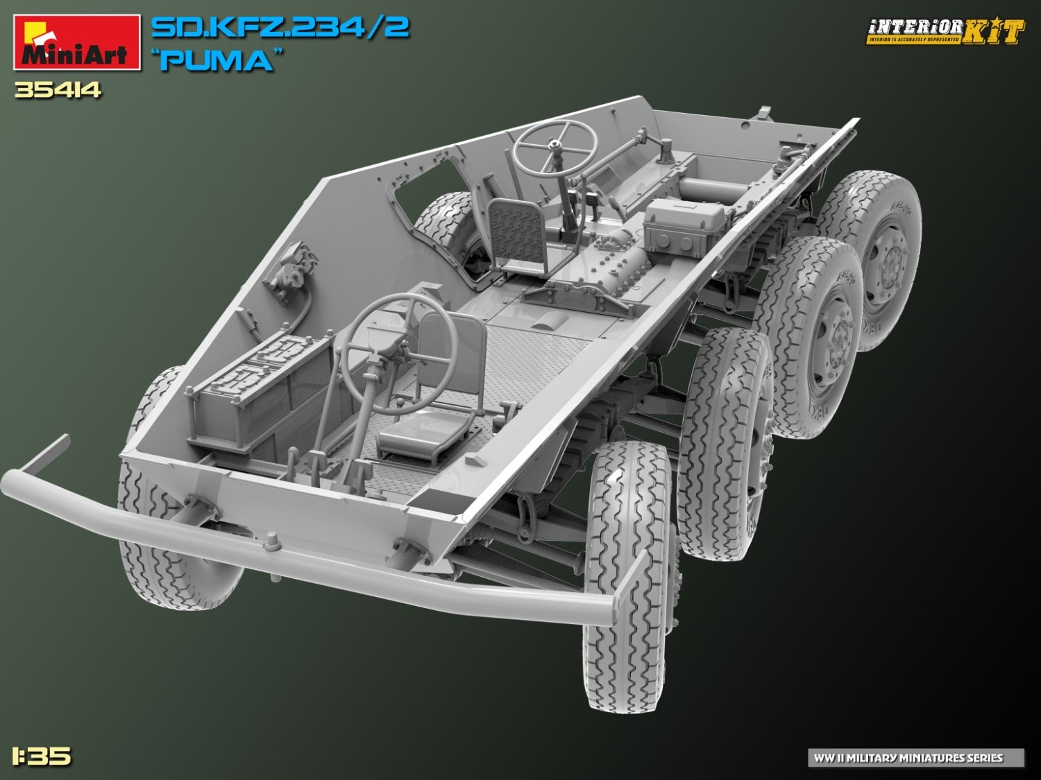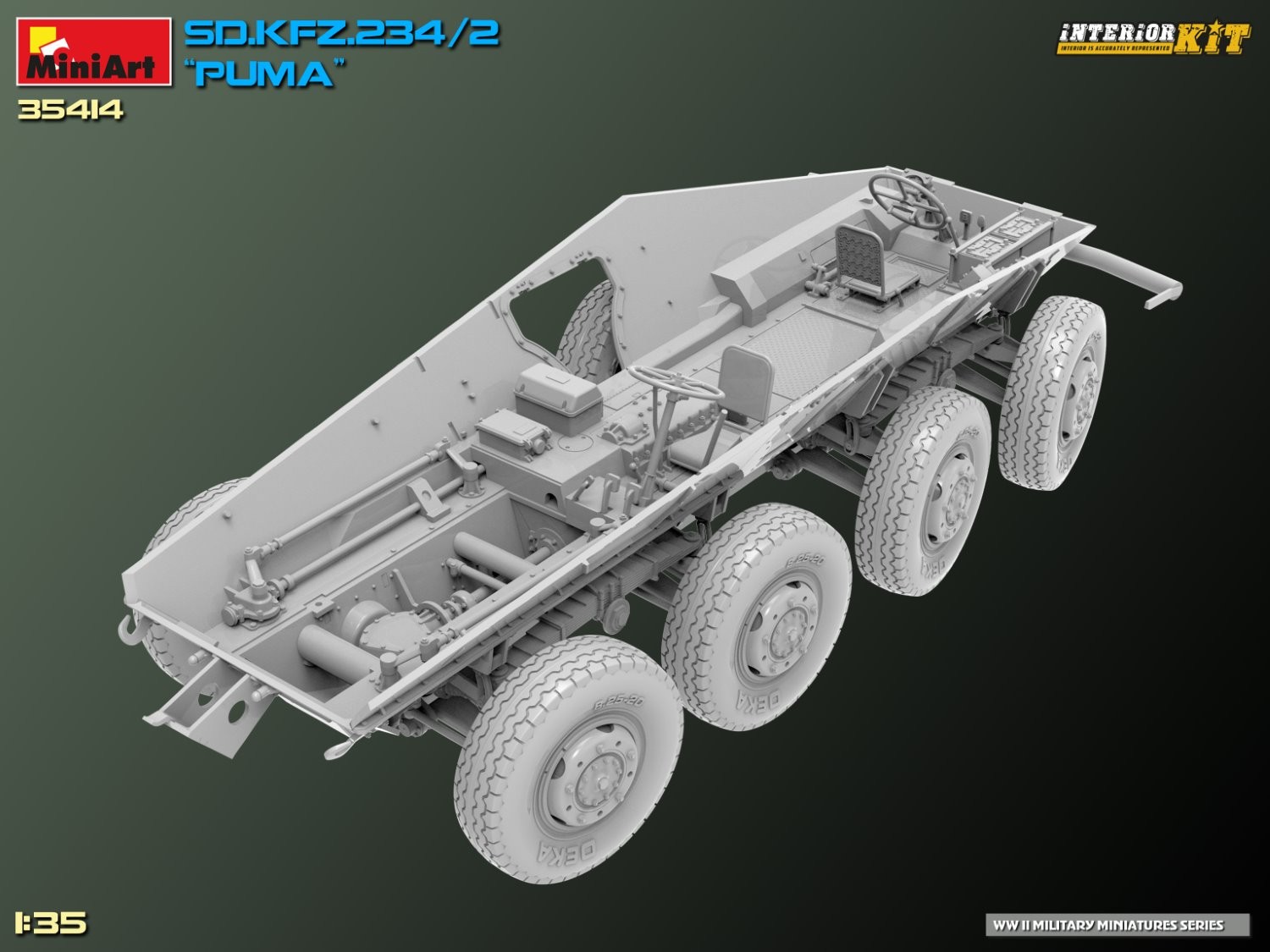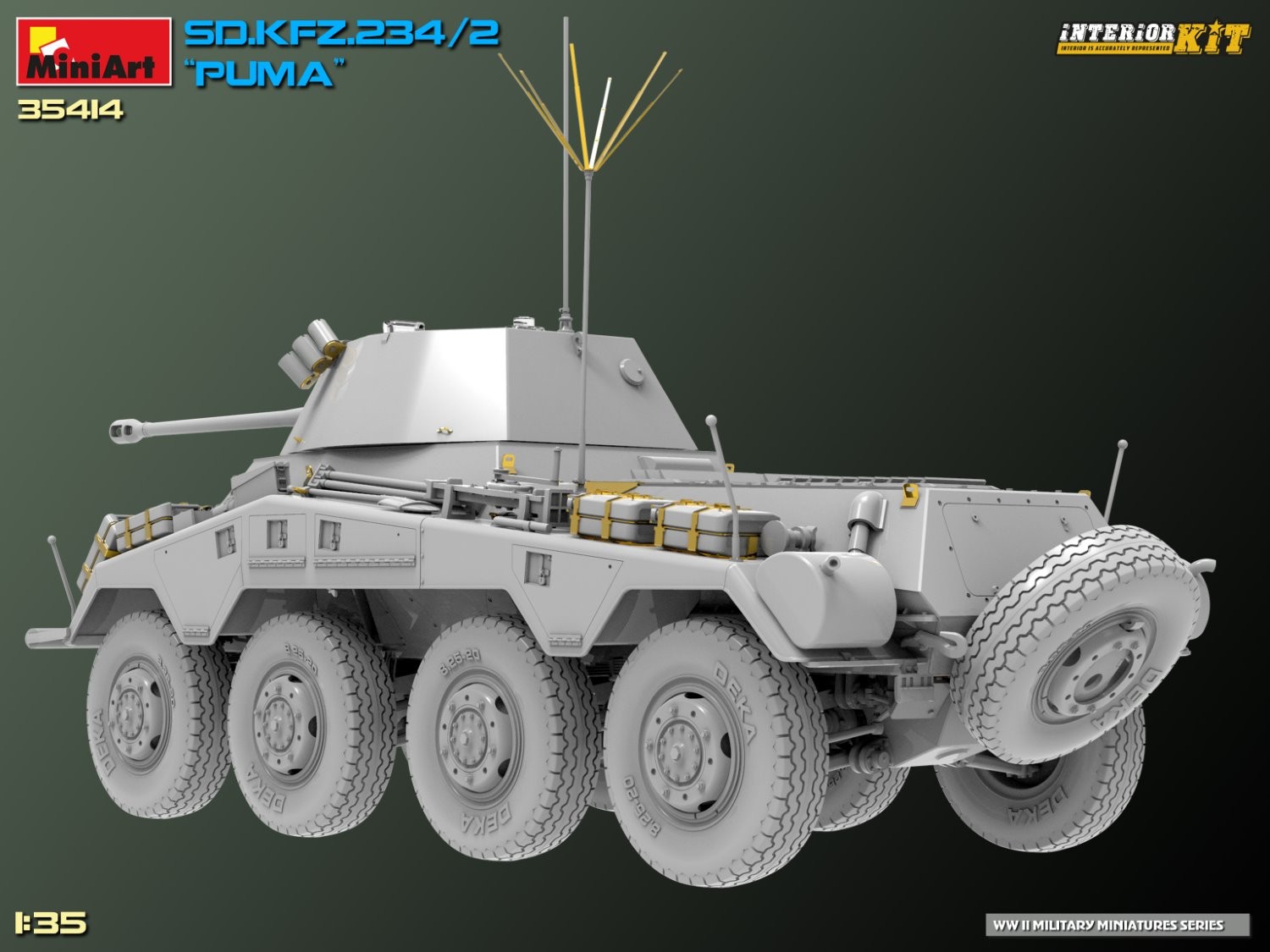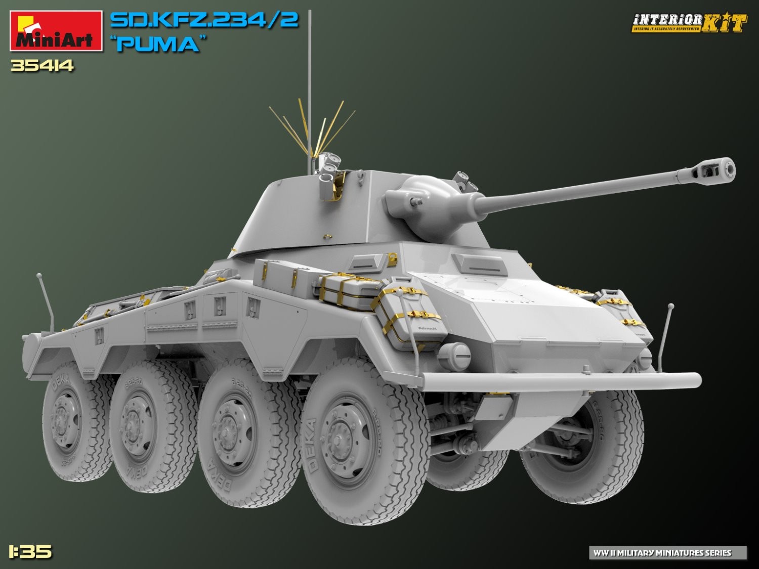 Samochód pancerny Sd.Kfz.234/2 Puma był drugim z serii samochodów pancernych oznaczonych symbolem 234. Pierwsze Sd.Kfz. 234/1 wyprodukowane zostały w 1943 roku w zakładach Büssing – NAG w Brunszwiku. Uzbrojone były w działko 20 mm i karabin maszynowy 7,92 mm. Następna była wersja Sd.Kfz. 234/2 Puma z działem 50 mm w opancerzonej obrotowej wieży, potem wersje Sd.Kfz. 234/3 Stummel i Sd.Kfz. 234/4 Pakwagen z działami 75 mm. Wszystkie wersje charakteryzowały się trakcją 8 –kołową, napędzane były silnikiem wysokoprężnym o mocy 220 KM. Osiągały maksymalną szybkość na drodze 90 km/h, w terenie 30 km/h. Załoga: 4 żołnierzy (dowódca-ładowniczy, działonowy, dwóch kierowców). W sumie wszystkich wersji tych pojazdów wyprodukowano 510 egzemplarzy. Samochody pancerne Sd.Kfz. 234 (wszystkie wersje) służyły głównie w dywizjach pancernych Wehrmachtu a także jako wsparcie piechoty na wszystkich frontach II wojny światowej aż do jej zakończenia. Nieliczne samochody pancerne tego typu są eksponatami w kilku muzeach na świecie. Najbliższe to Tank Museum w Munster w Niemczech i Bovington Tank Museum w Dorset w Wielkiej Brytanii.