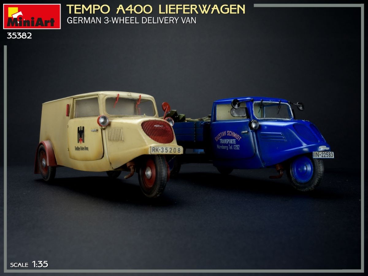 Założona w 1928 roku w Hamburgu firma Vidal & Sohn Tempo –Werk GmbH zajęła się produkcją samochodów dostawczych. Ze względu na fakt, że samochody z ilością kół mniejszą, niż 4 i pojemnością silnika mniejszą, niż 200 cm³ były zwolnione z podatków i można je było prowadzić bez prawa jazdy zarząd firmy biorąc pod uwagę duże zapotrzebowanie rynku na takie pojazdy podjął się produkcji trójkołowców z odpowiednią pojemnością silnika. Pierwszymi trójkołowcami powstałymi z połączenia motocykla z platformą wyprodukowanymi w tej firmie były T6 i T10. W roku 1955 doszło do fuzji z firmą Hanomag, w 1965 obie firmy przejęła firma Rheinstal a ostatecznie w 1971 roku firma Daimler Benz . Produkcję trójkołowca T 400 rozpoczęto w 1938 roku. Napęd: silnik benzynowy 400 cm³, moc 12 KM. Napędzane było przednie koło w układzie silnik –skrzynia biegów –łańcuch, przy czym obudowa łańcucha jako część nośna oraz przednie koło były połączone przegubowo z resztą pojazdu. Do roku 1941 wyprodukowano 790 szt samochodów Tempo T 400. Były produkowane w kilku wersjach: jako samochód dostawczy, jako Van/ minibus a nawet jako pojazd ratownictwa medycznego. Podwozie i nadwozie Tempo T 400 było całe wykonane ze stali w odróżnieniu od wcześniejszych Tempo (sklejka plus stal). Trójkołowce były produkowane (nowsze konstrukcje) jeszcze w latach 60 –tych i to nie tylko w Niemczech. Licencyjne trójkołowce produkowano w Indiach i na Węgrzech. Obecnie nieliczne trójkołowce Tempo T 400 są w posiadaniu kolekcjonerów a także w niemieckich muzeach motoryzacji.