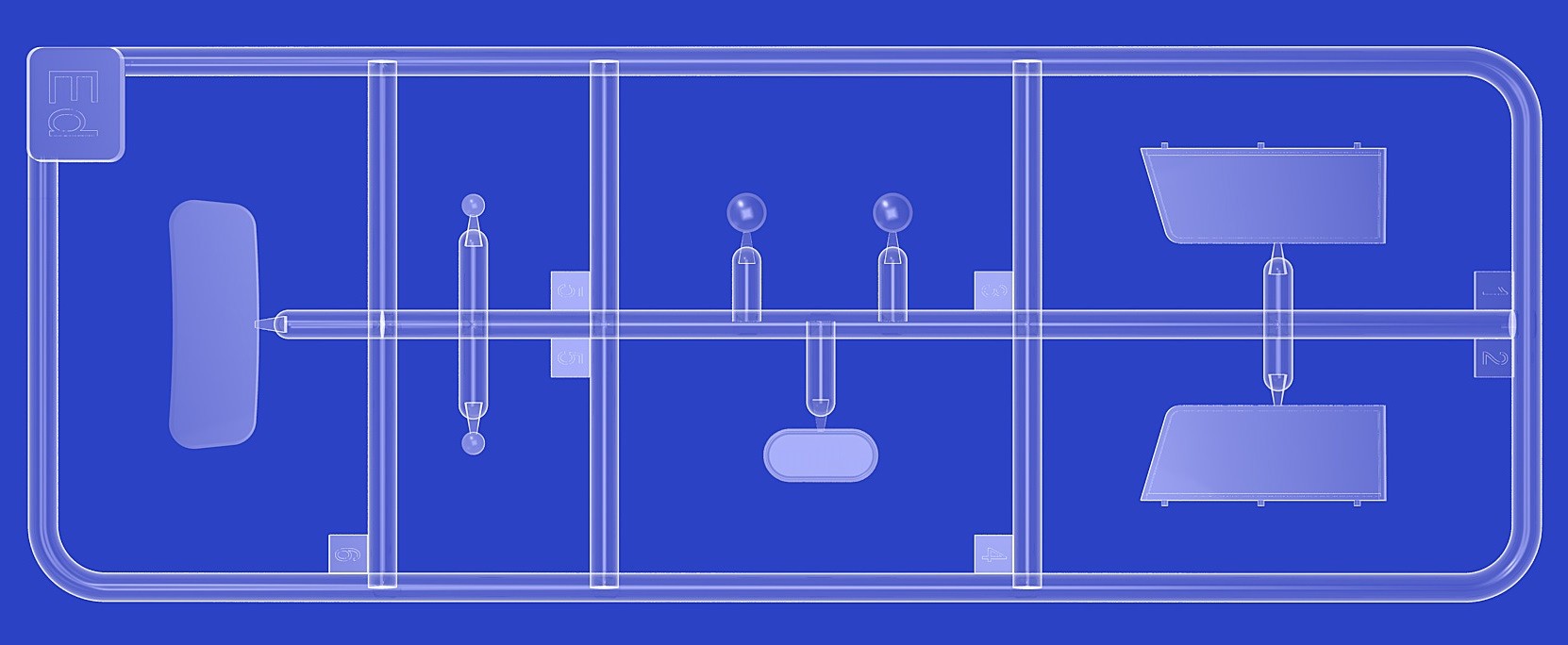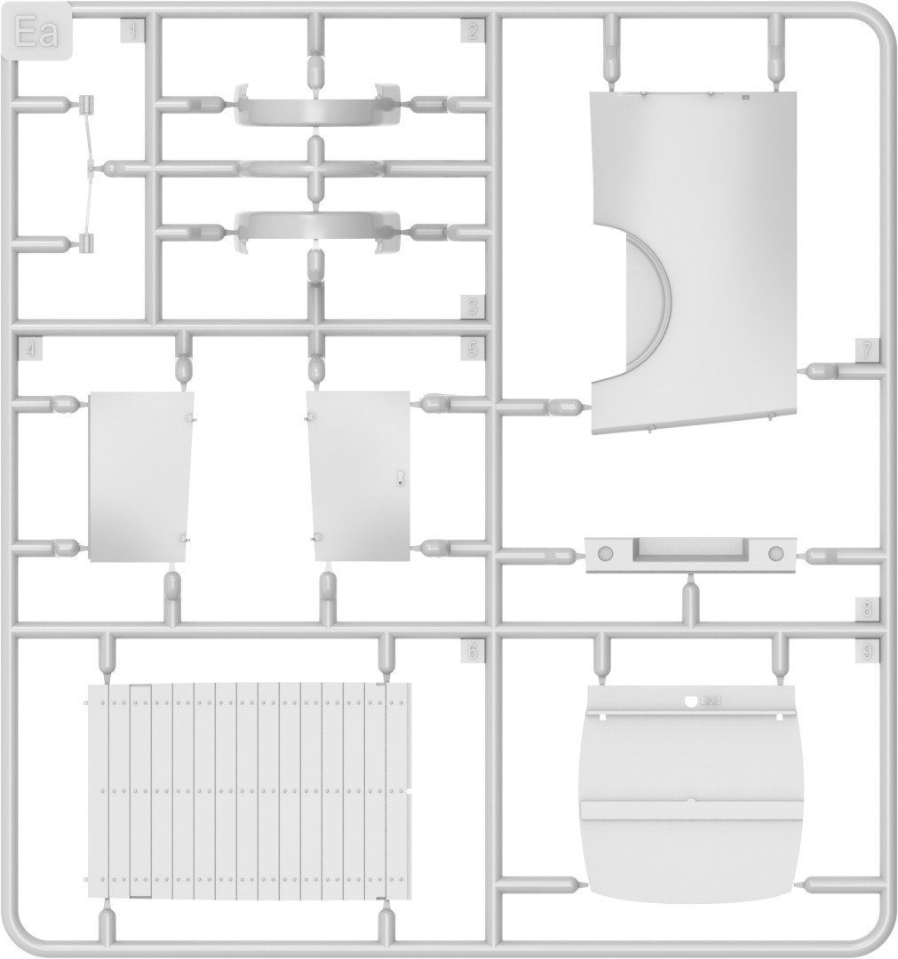 Model plastikowy do sklejania zawiera wszystkie elementy potrzebne do budowy modelu, w tym m.in.:
