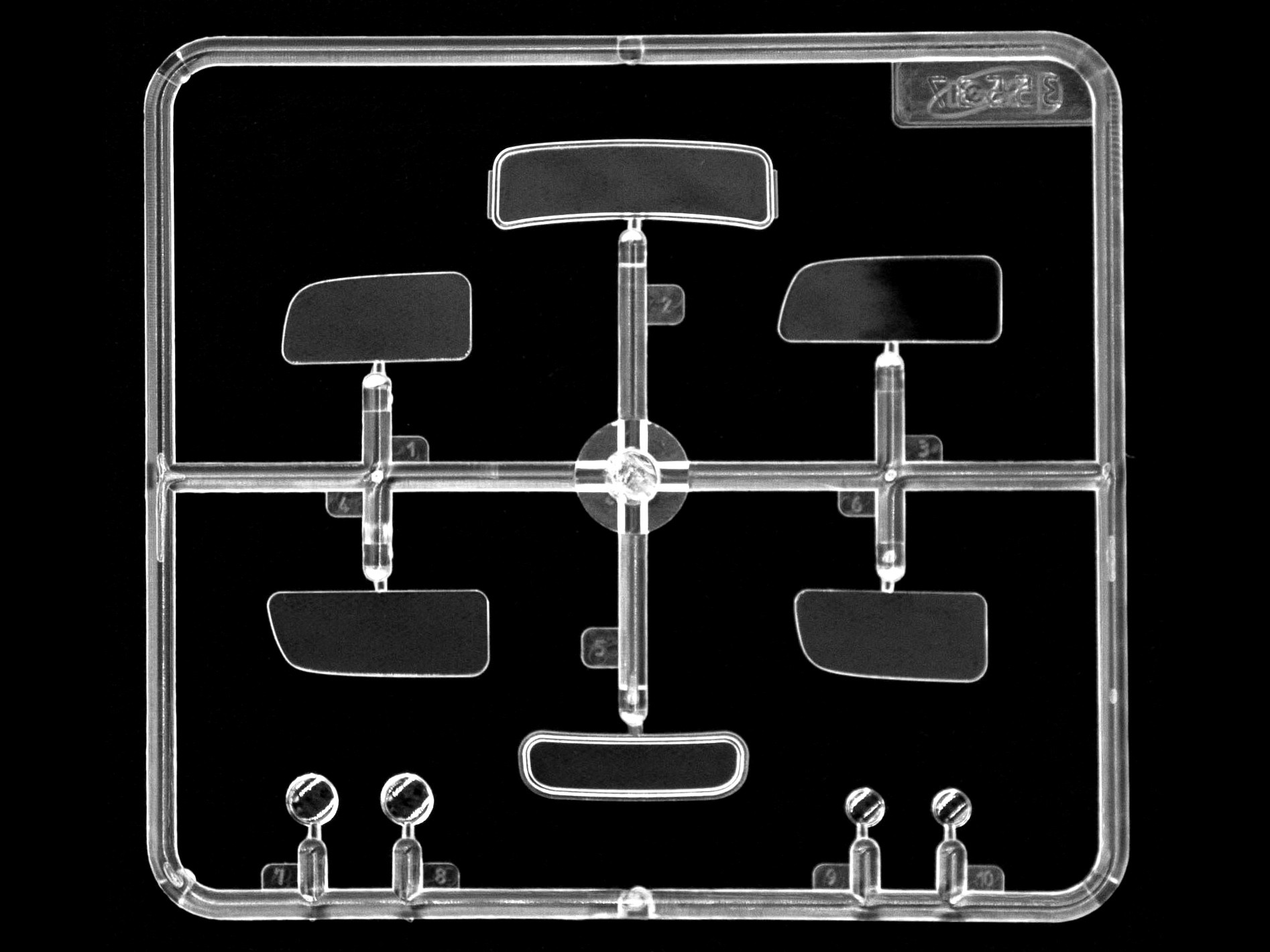 Model plastikowy do sklejania zawiera wszystkie elementy potrzebne do budowy modelu, w tym m.in.: