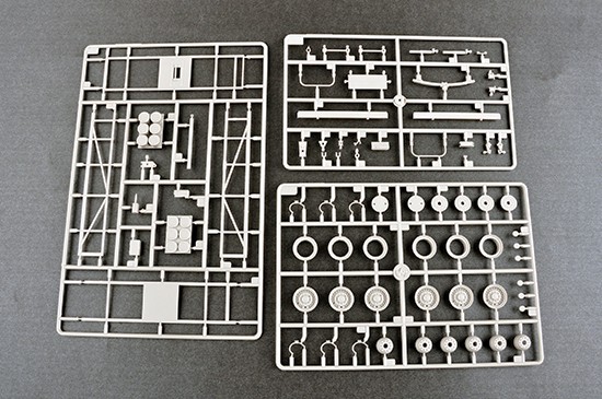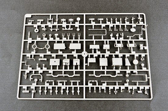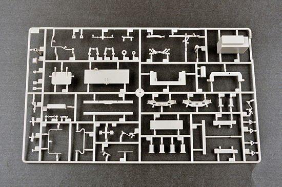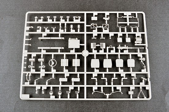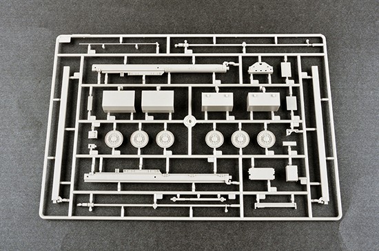 Model plastikowy do sklejania zawiera wszystkie elementy potrzebne do budowy modelu, w tym m.in.: