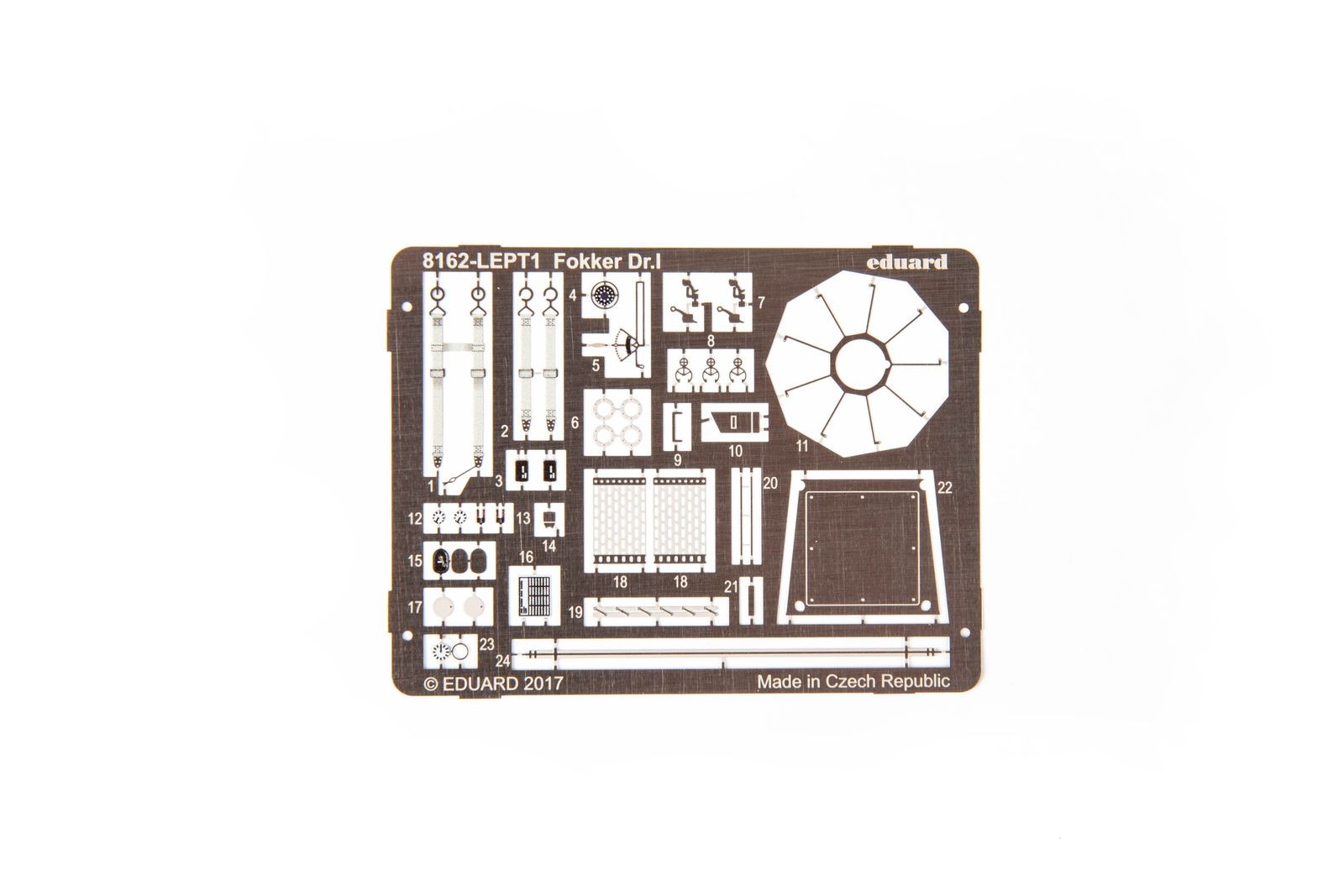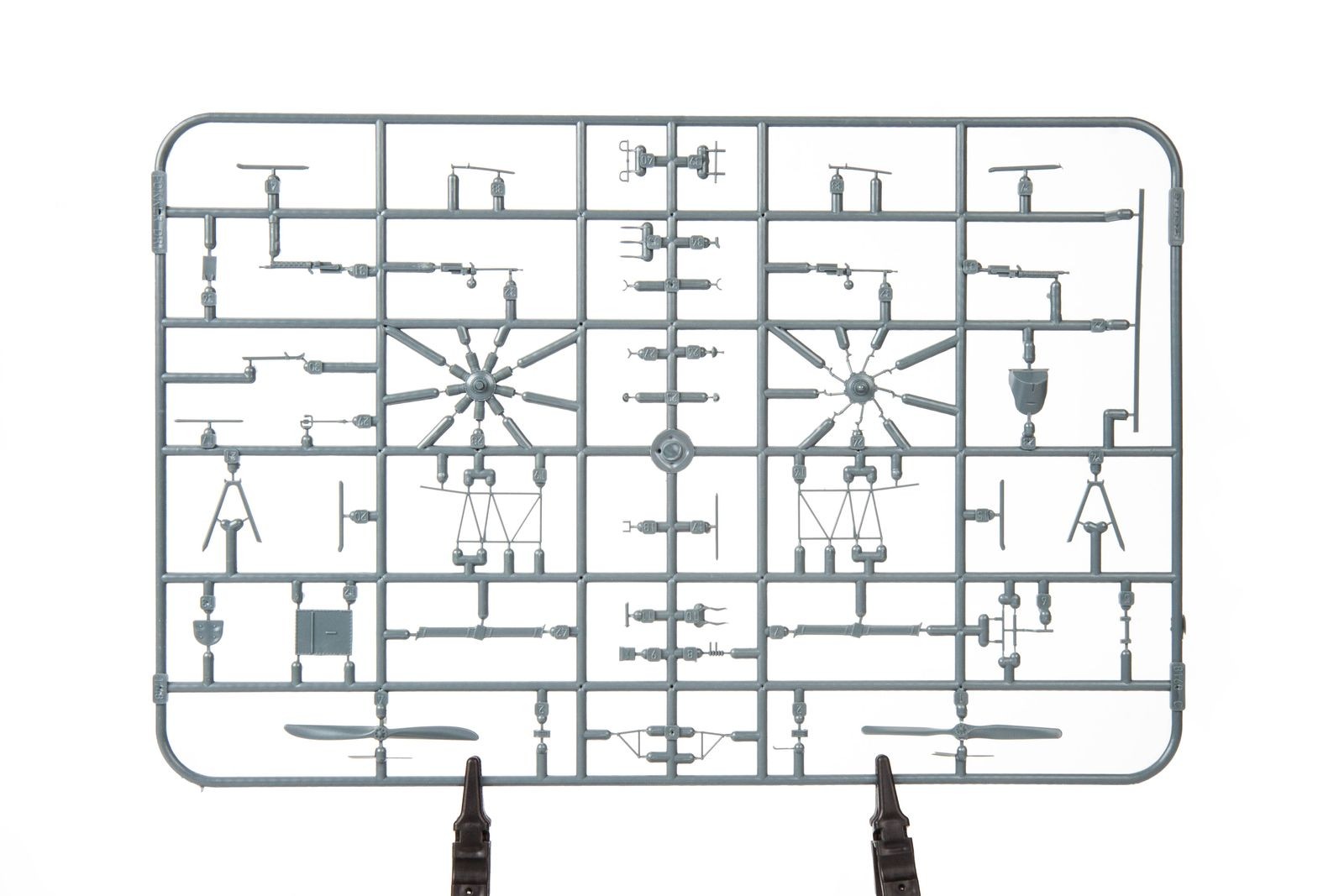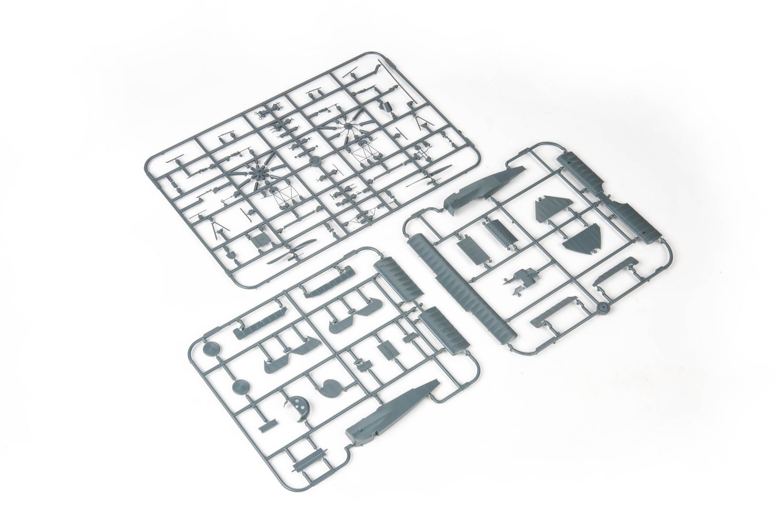 Model plastikowy do sklejania zawiera wszystkie elementy potrzebne do budowy modelu, w tym m.in.: