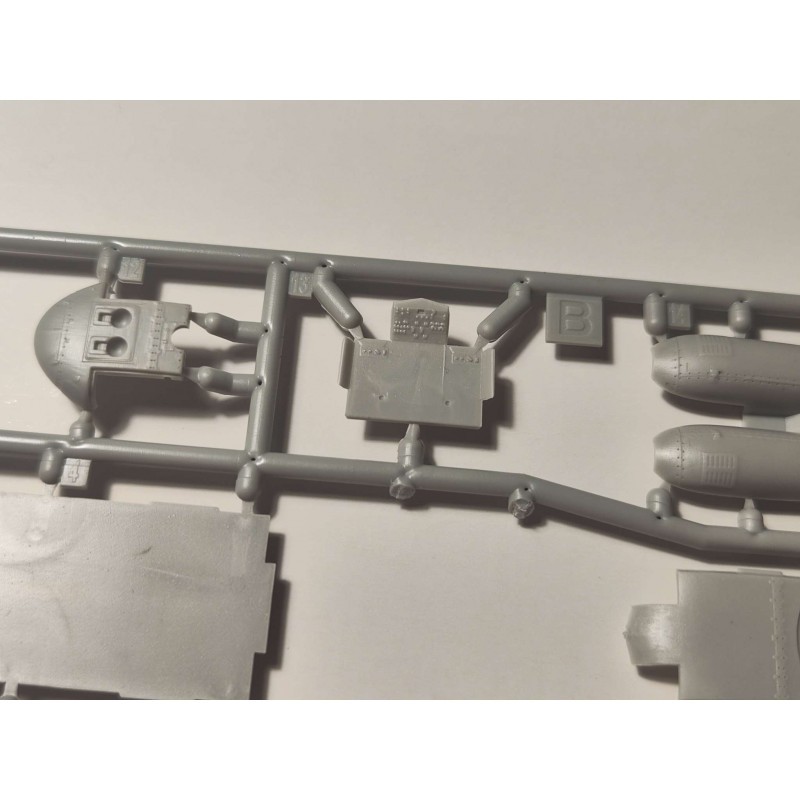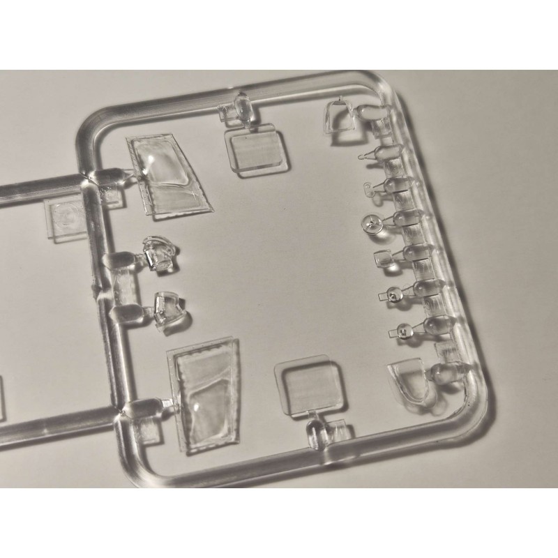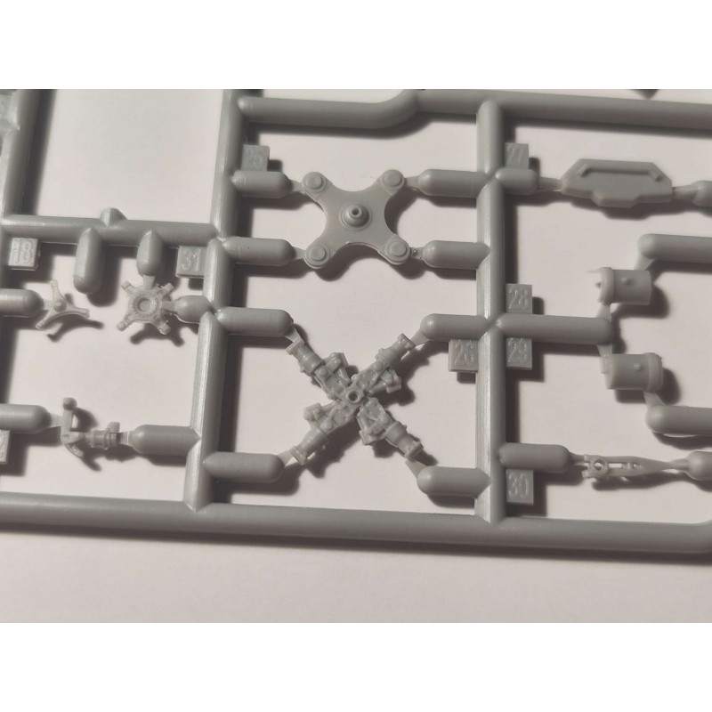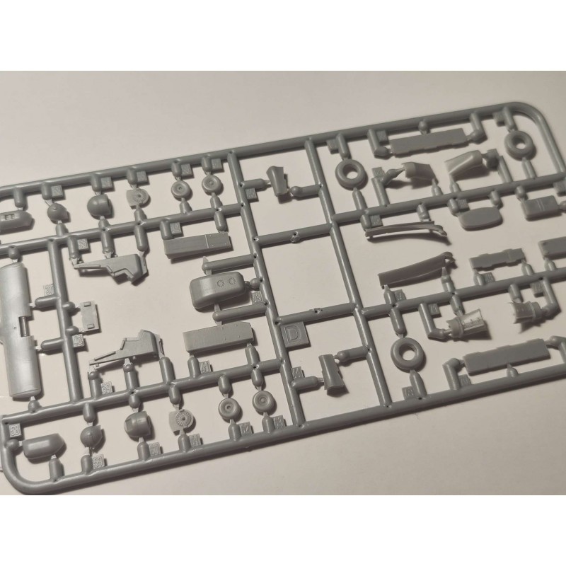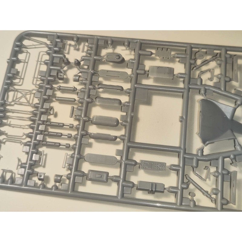 Model plastikowy do sklejania zawiera wszystkie elementy potrzebne do budowy modelu, w tym m.in.: