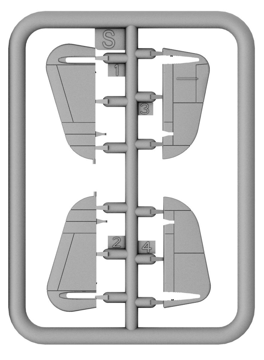 Model plastikowy do sklejania zawiera wszystkie elementy potrzebne do budowy modelu, w tym m.in.:
