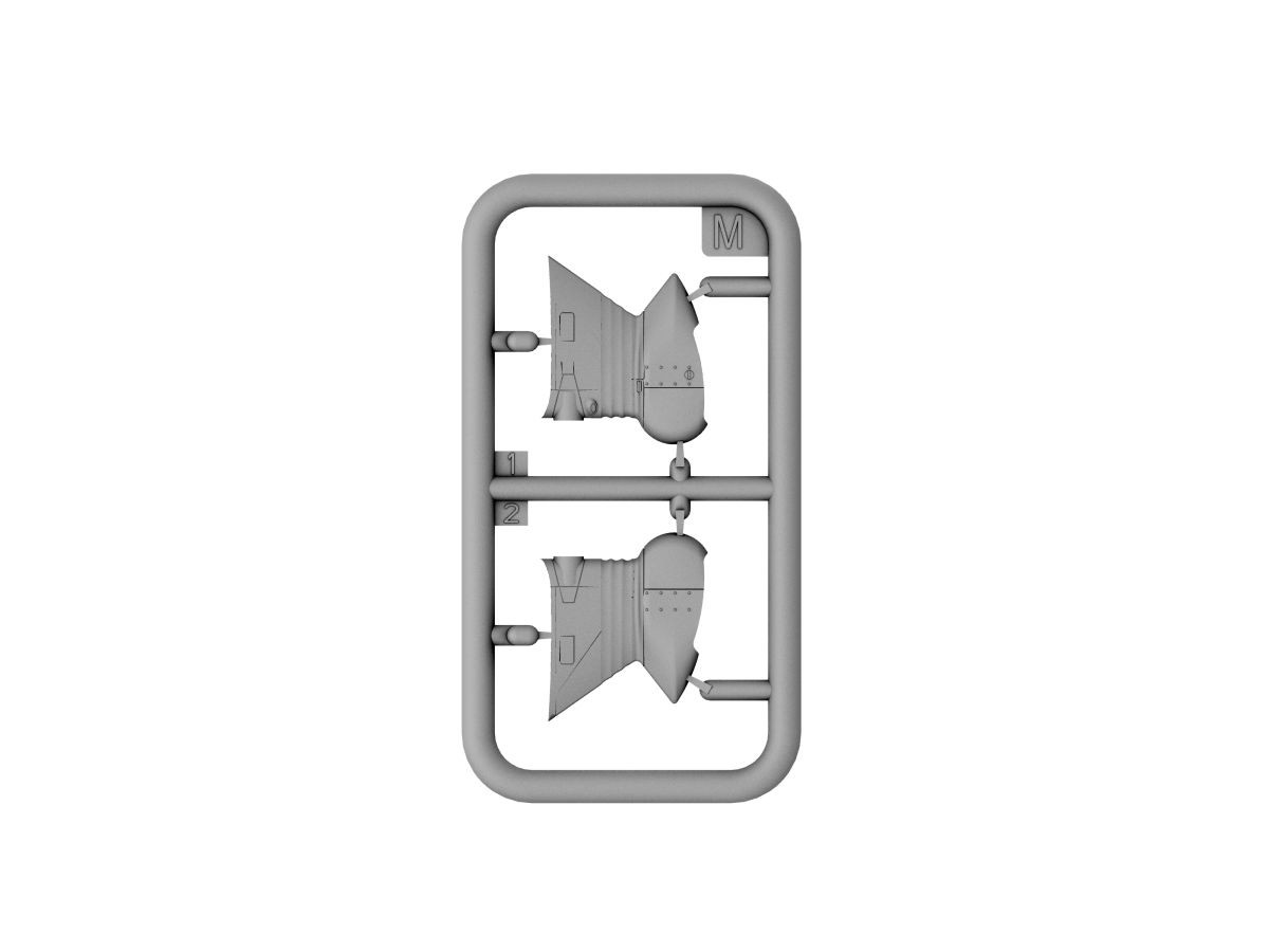 Model plastikowy do sklejania zawiera wszystkie elementy potrzebne do budowy modelu, w tym m.in.: