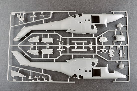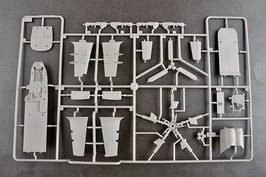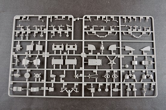 Model plastikowy do sklejania zawiera wszystkie elementy potrzebne do budowy modelu, w tym m.in.:
