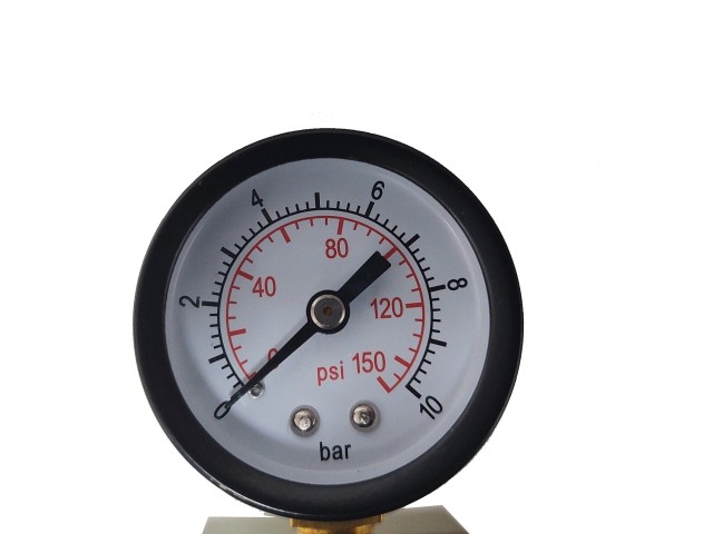 Maksymalne ciśnienie (manometr jest do tej wartości) 10 bar, zlecane do 8 bar.