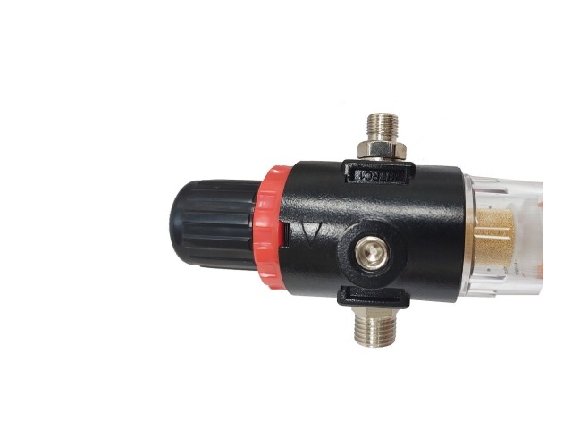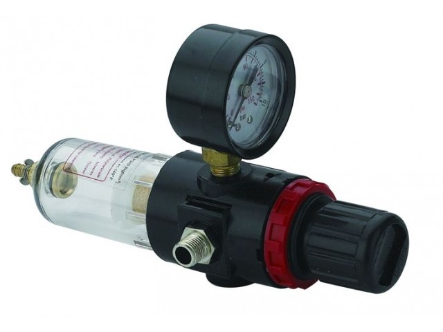 Redukuje ciśnienie, umożliwia filtracje powietrza, co zapobiega uszkodzeniu narzędzi pneumatycznych. Uniemożliwia skraplaniu się wody w przewodach pneumatycznych.
