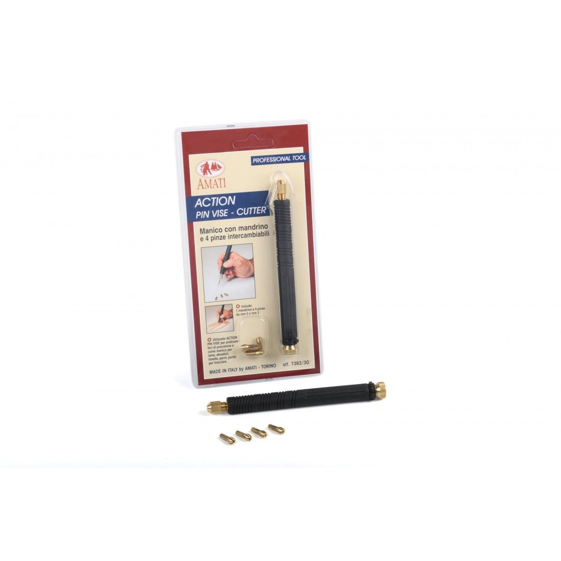 Narzędzie jest przydatnym uchwytem do wierteł, frezów, rozwiertaków, pilników i innych narzędzi. Zestaw zawiera uchwyt i 4 tuleje zaciskowe o średnicach od 0 do 3mm.